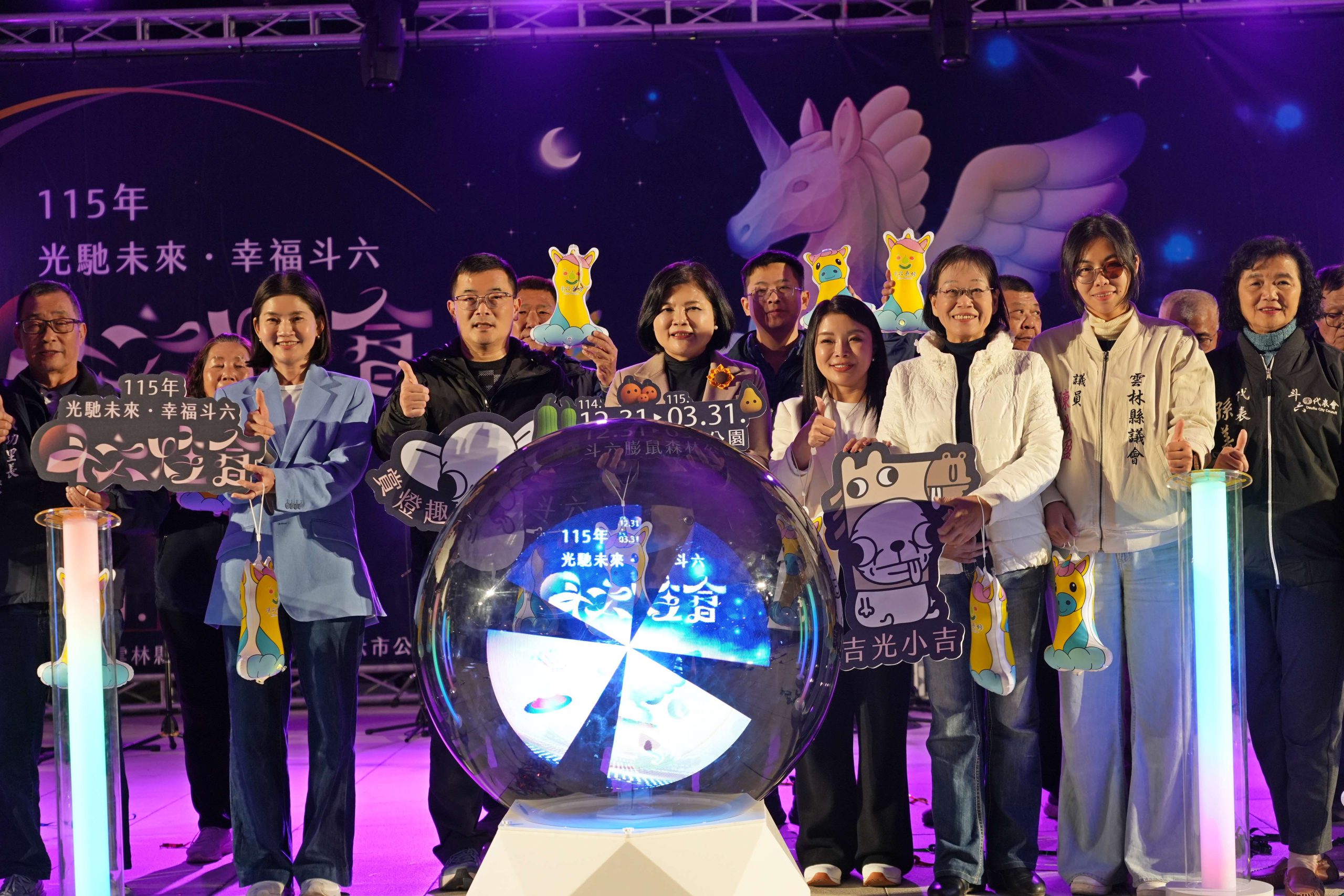 今天啟燈儀式由縣長張麗善、立委張嘉郡、副縣長謝淑亞、陳璧君、斗六市長林聖爵、主席胡克勤、議員陳芳盈,及斗六市多位代表、里長共同主持;除發放限量馬年提燈,也邀請「小男孩樂團」等多組藝人團體表演,現場熱鬧喜氣。