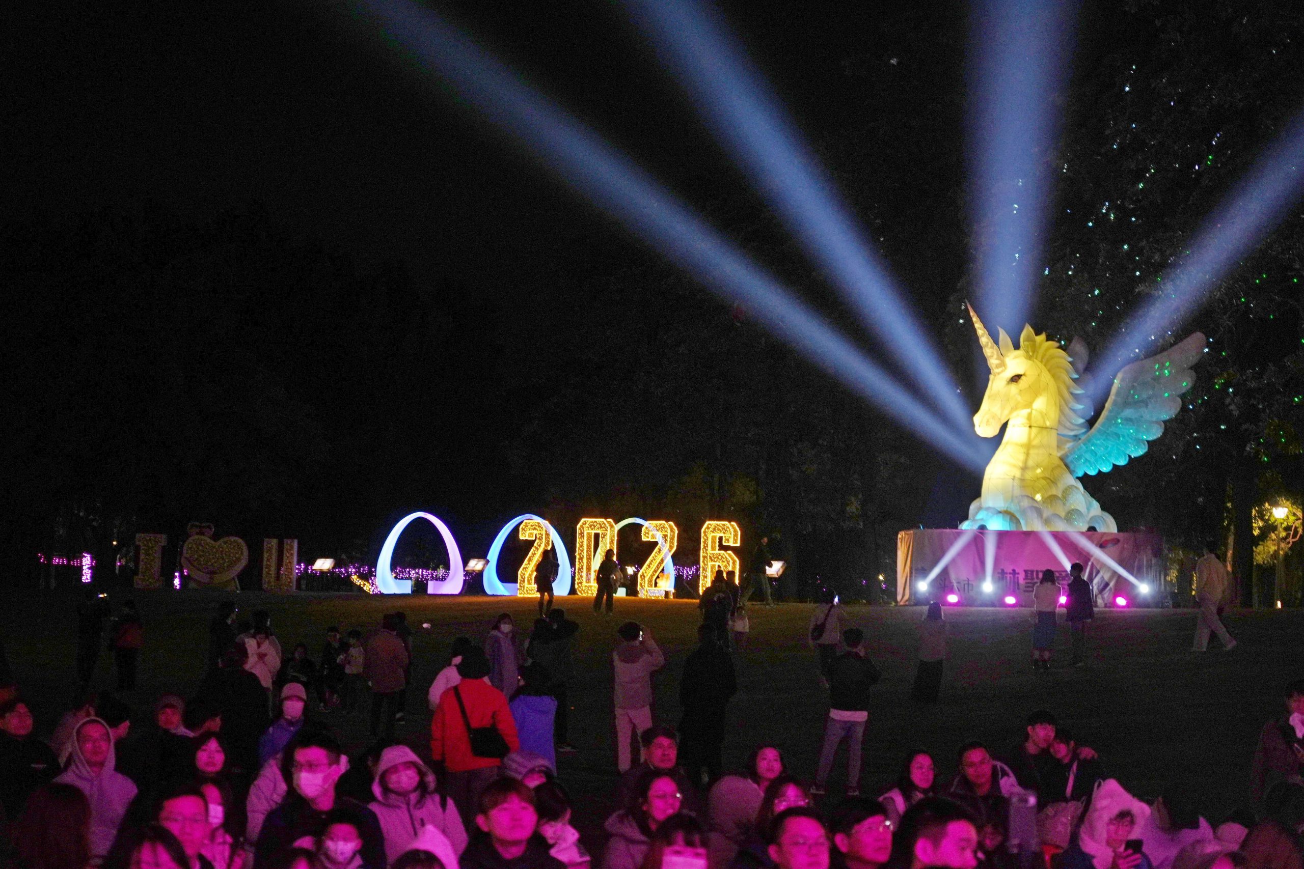 斗六市公所表示,2026年斗六燈會展期自即日起一路延續至3月31日。主燈以象徵希望與祝福的純白獨角獸為主角,搭配雲朵、彩翼與多層次光影效果,在夜色中展翼飛翔,令人耳目一新。園區內並規劃多組特色燈區,融入斗六在地農產、趣味造型與藝術設計,透過燈光、造型與環境的巧妙結合,打造獨具風格的燈會景觀。
