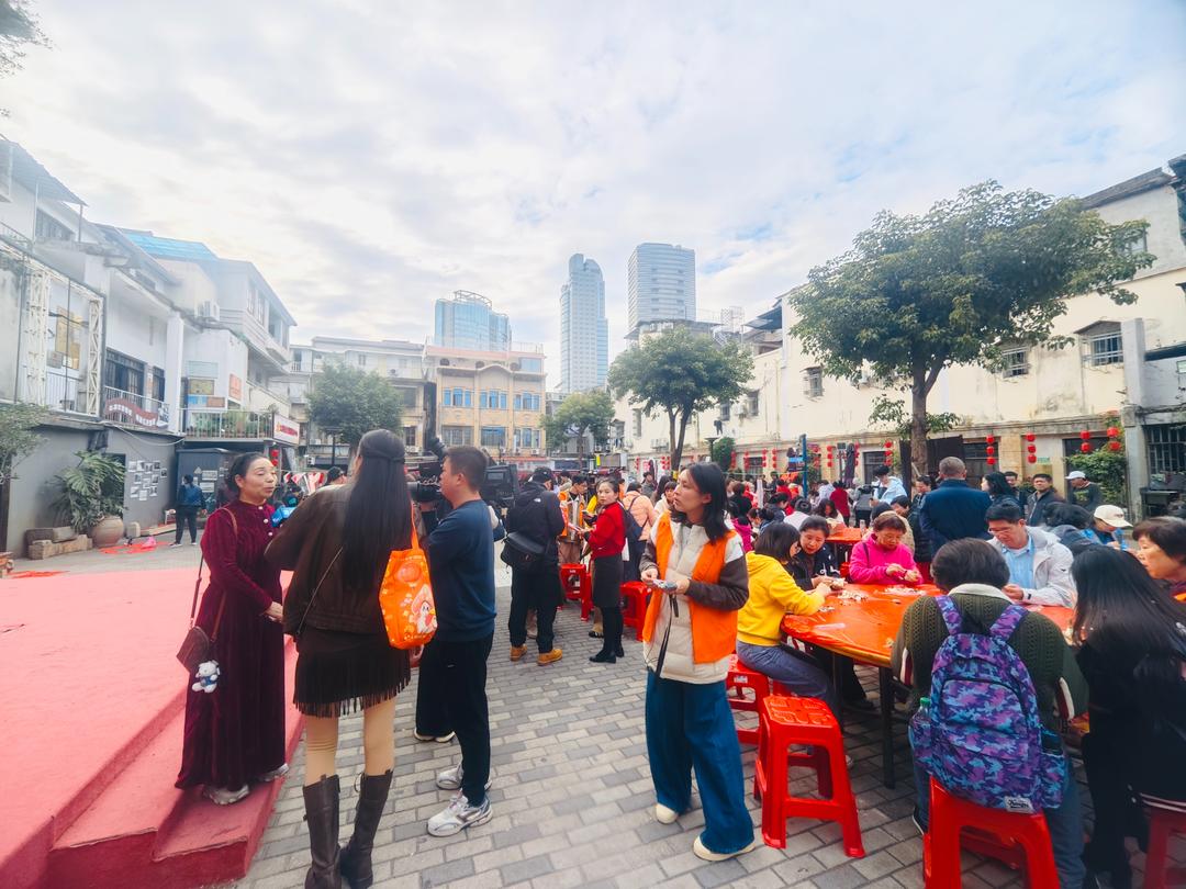 行程随後延伸至八市、營平路一帶,台胞們走進鹭江老劇場,參與“新春雅集”。活動現場,資深雕刻師現場教授水仙雕刻技藝,兩岸書法家即席揮毫書寫春聯福字。台胞們圍坐品茗、暢叙心聲,在茶香與笑語中,兩岸情誼愈發醇厚。