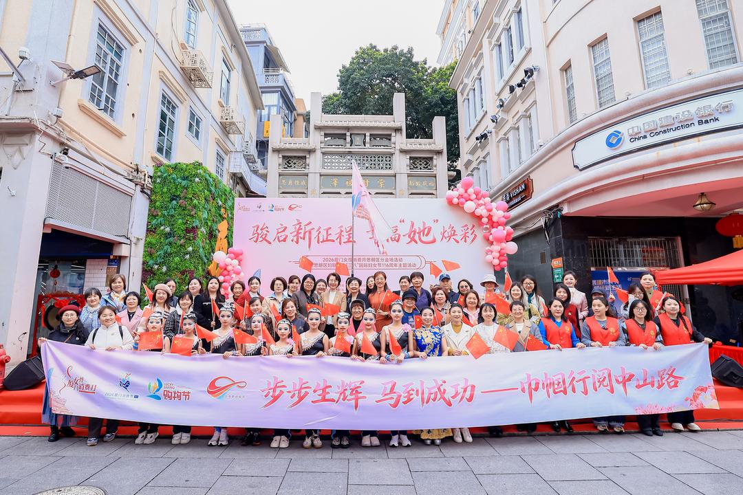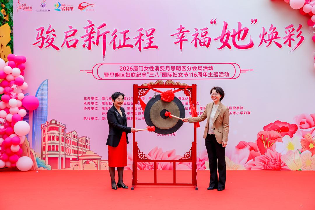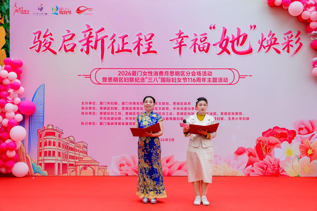 春風送暖,巾幗綻芳。3月3日,“駿啓新徵程 幸福‘她’煥彩”2026廈門女性消費月思明區分會場活動暨思明區婦聯紀念“三八”國際婦女節116週年主題活動,在廈門中山路步行街盛大啓幕。百年騎樓之下,粉色主題背景闆與繽紛氣球交相輝映,現場人頭攢動、暖意融融。來自社會各界的女性代表與市民遊客齊聚一堂,共赴這場緻敬巾幗力量、傳遞城市溫情的春日盛會。