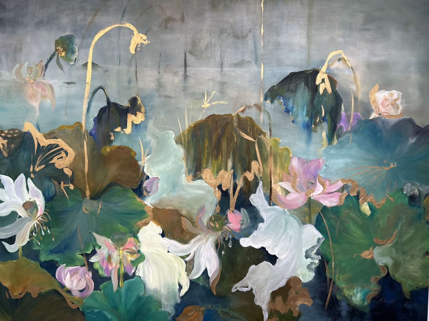 文化觀光處表示,李蕙瑾老師長年潛心於藝術創作,將音樂、文學與詩詞融入畫作之中,形成獨樹一格的「禪意美學」。在她的畫筆下,荷花不再只是尋常的花卉,而是千變萬化的生命體悟與教化,其代表作《荷顏悅色》透過詩意筆觸點出了有生即有滅、盛極而衰的自然法則,引人深思;《歲月靜好》則以殘荷秋影呈現歷經沉澱後,一種接受生命自然循環的和平與從容。