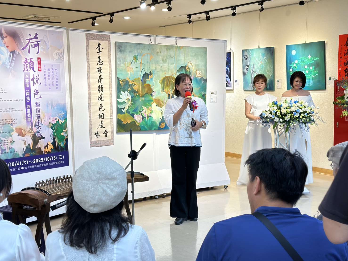 屢獲國際殊榮的藝術家李蕙瑾在雲林縣政府文化觀光處展覽館1樓舉行「荷顏悅色」油畫個展,展期自10月3日至10月15日止。今(4)日下午舉行開幕式,共展出50幅以「荷」為題的油畫創作,以獨特的禪意美學詮釋生命的流動與寧靜,副縣長謝淑亞歡迎民眾踴躍前來觀賞,感受藝術家對生命哲學的細膩體悟。