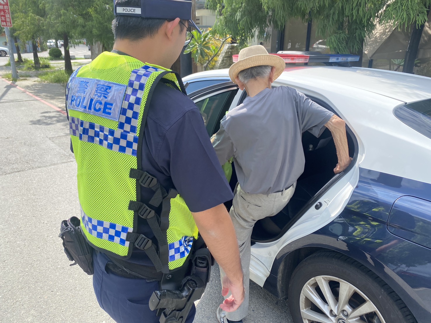 警方見狀,隨即將老翁攙扶上巡邏車,依其口述地址護送返家,未料抵達後,老翁卻表示「這裡不是我家」。眼看情況陷入僵局,許、黃兩員並未放棄,而是耐心陪同老翁在附近街道與巷弄逐一尋找。