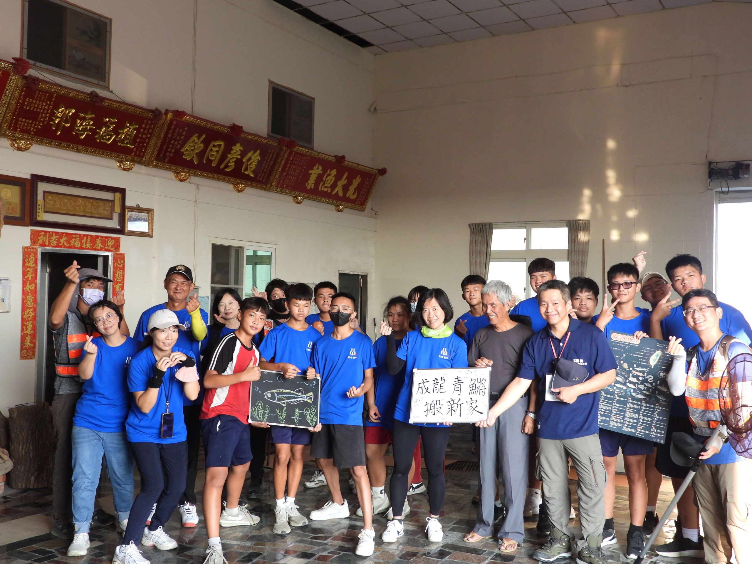 雲林縣政府與宜梧國中自去年起合作辦理成龍濕地生態教育特色課程,本月16日帶領師生將成龍濕地的特有魚種「成龍青鱂」進行移池保育工作,指導學生進入室內暫養池操作撈網集中,隨後前往戶外龍鬚菜養殖池釋放魚群,延續特色課程中觀察成龍青鱂利用龍鬚菜穩定野外族群數量,以在地特色自然生態知識增進科普思考創新能力,共同為保護濕地生物多樣性目標貢獻一己之力。