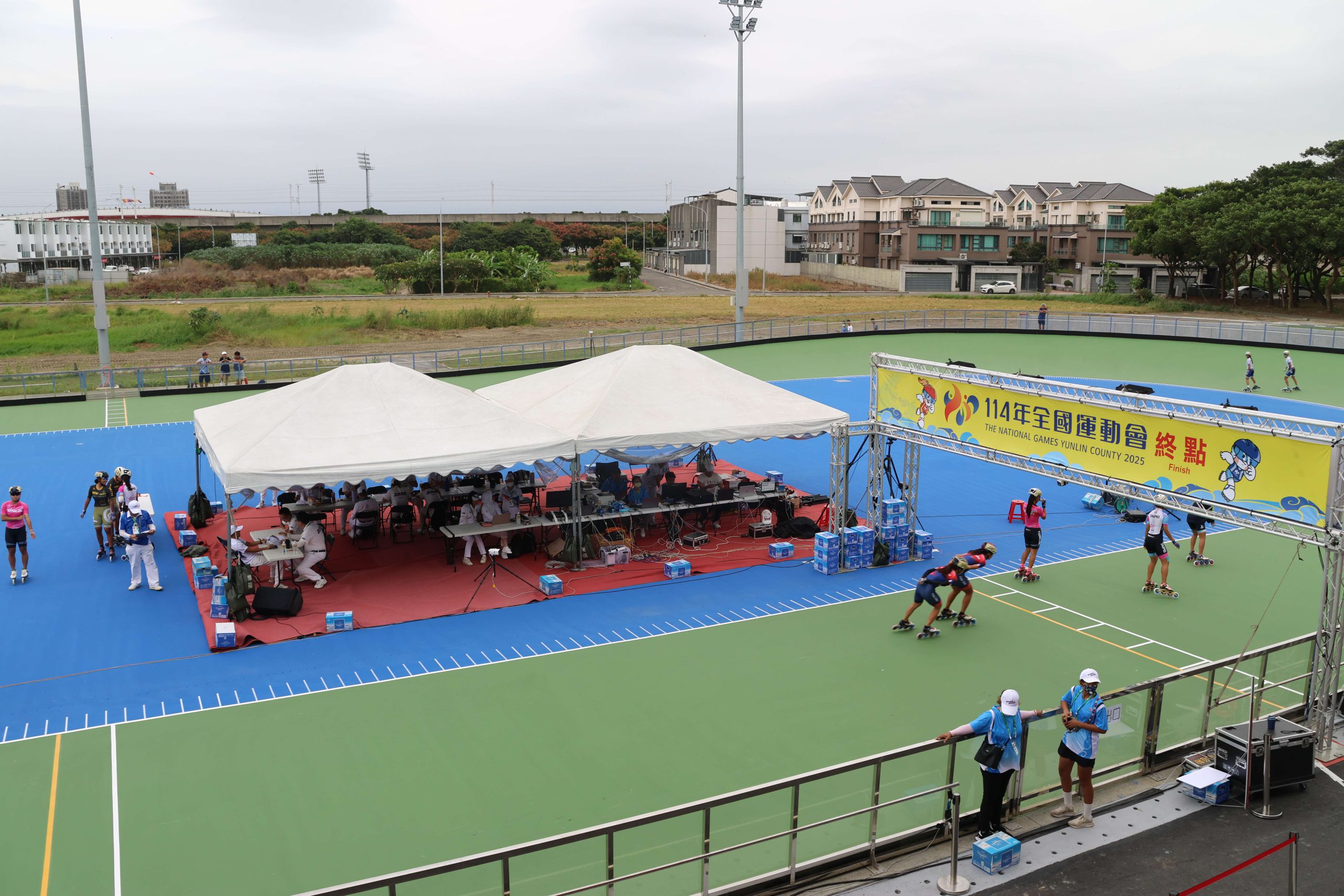 張縣長也仔細解說雲林縣立田徑場及縣立滑輪溜冰場,指出雲縣府團隊以600天、21億元經費完成不可能的任務,興建符合國際級水準的全運會主場館-雲林縣立田徑場,是台灣目前唯一擁有九彎十直跑道的運動場地,更可同時進行跳遠及跳高等比賽;而新建的雲林縣立滑輪溜冰場耗資1.2億,屬於拋物線型賽道,場地寬7公尺長200公尺,是符合國際標準之競速滑輪溜冰場,兩場館可以說都是為全運會精心打造的,更可提供為日後大型賽事場地。