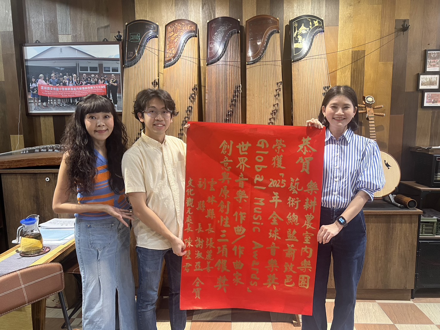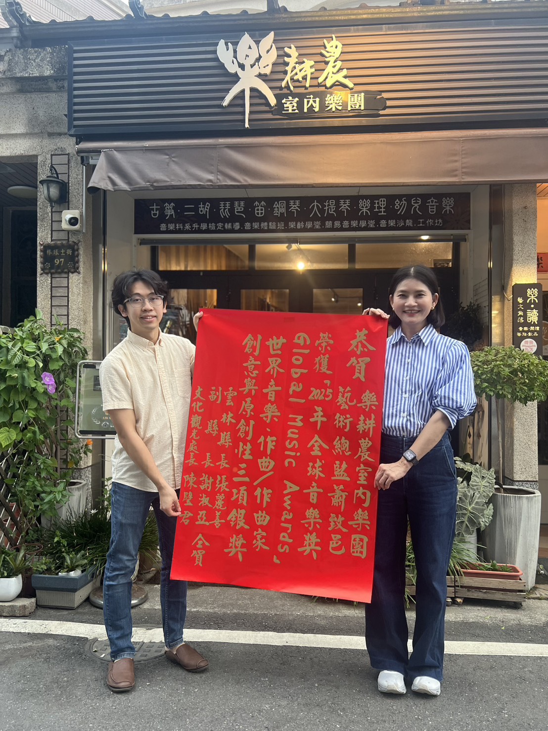 雲林縣傑出表演團隊「樂耕農室內樂團」以專輯《Traveler》勇奪2025年「全球音樂獎(Global Music Awards)」三項銀獎,再度在世界舞台上展現雲林音樂創作的能量。文化觀光處長陳璧君特地前往張貼紅榜,表達縣府對藝術總監蕭致邑及團隊的誠摯祝賀。