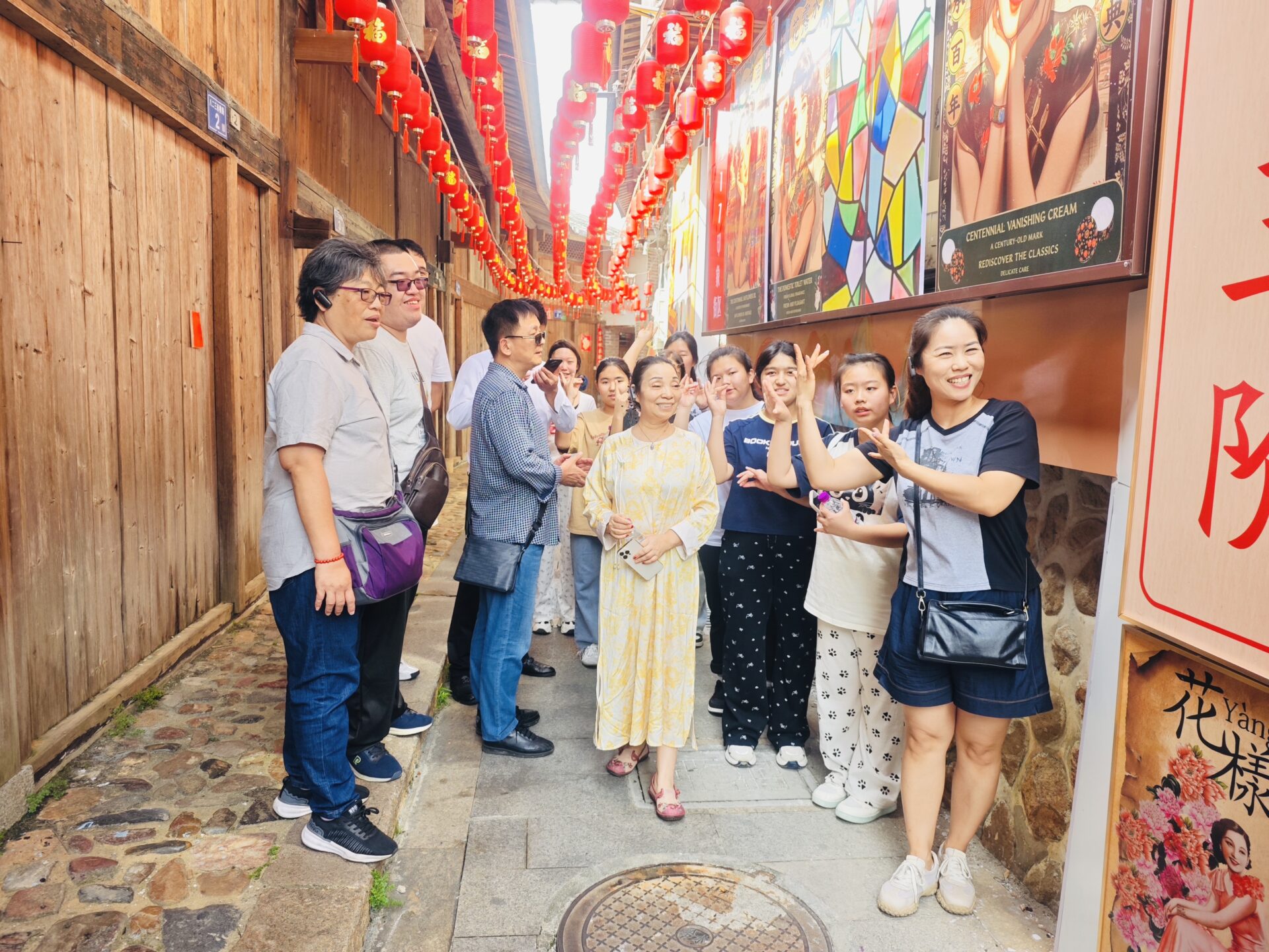 活動期間,兩岸五地的殘疾人嘉賓與演職人員一同走進余光中文學館、余光中故居及詩歌主題展館,在青磚瓦黛的古街巷與靈秀山水間沈浸式感受詩歌里的故土意境,聆聽大師與故鄉的淵源故事。參觀途中,大家打破地域界限熱絡交友,歡聲笑語不斷:台灣嘉賓與吉林的亮亮歌手、王凱歌手相談甚歡,與新疆殘聯一行坦誠交流、互訴心聲,迅速建立起深厚的友好關係。交流中,吉林、新疆的嘉賓們更是熱情邀約,主動策劃表演合作,誠摯邀請台灣殘疾朋友及張揚任、劉夢緣前往當地登台演出,讓這份跨越山海的情誼有了更具體的延續方向,文化同根同源的認同感在真摯互動中愈發強烈。台灣嘉賓動情表示:“‘鄉愁’在這裡成為我們共同呼吸的空氣,而跨越山海的友誼與演出邀約,更讓這份文化聯結有了溫度與期待。”隨後,大家徜徉於永春的綠水青山,領略“一縣一溪一特色”的生態畫卷,在僑新釀造公司觸摸永春老醋的傳統工藝與創新活力,在五里古街欣賞永春白鶴拳、紙織畫等非遺項目,濃濃鄉愁與文化魅力讓嘉賓們深深沈醉。一位西藏演職人員感慨:“永春的文化與高原迥異卻同樣深厚,更難得的是結識了這麼多志同道合的朋友,還定下了未來的相聚之約,讓我們眼界大開、內心溫暖。”