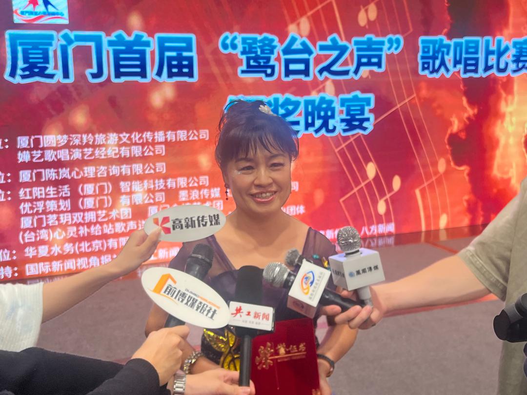 領獎台上,林惠珠難掩激動之情,她發表得獎感言時說:“從台灣來到廈門參賽,原本只是想和兩岸的歌友交流學習,從沒想過能拿到冠軍。這份榮譽不僅是對我歌唱的肯定,更讓我感受到兩岸同胞一家人的溫暖。比賽中結識了很多優秀的朋友,我們一起聊音樂、談文化,這種心與心的連接難能可貴。感謝主辦方搭建這麼好的平台,未來我願意做兩岸文化交流的小小使者,用歌聲傳遞友誼與愛。”