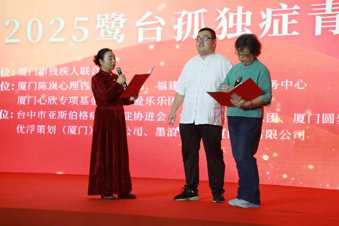 在深耕特教領域多年的陳習珍老師看來,音樂更是孤獨症青年走進社會的重要起點。“對孤獨症青年來說,社交溝通是一道難關,而音樂合奏恰好提供了最自然的練習場景。你看舞台上的他們:小緣用琴聲呼應任任的旋律,任任偶爾出錯時小昭主動放慢節奏,大家互相點頭鼓勵——這種無需言語的理解,正是社交能力的萌芽。”她從專業角度分析,合奏過程中需要的傾聽、配合、規則意識,能幫助青年們逐步學會協作與表達;而台下兩岸觀眾的掌聲與認可,更會轉化為他們走進人群、融入社會的強大勇氣。“更重要的是,這樣的交流讓我們看到,孤獨症青年的成長需求是相通的。青年們之間純粹的友誼、彼此扶持的力量,讓愛心與經驗跨越海峽,相互滋養,這正是活動最珍貴的意義。”